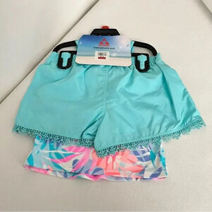 New, Gerry Swimwear 3-Piece Tankini & Shorts Swimsuit Bathingsuit Set Size M (10/12) UPF 30+ Protection, aqua blue/pink colors.
