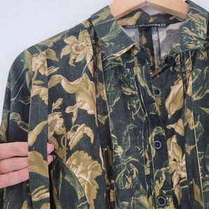 GARYGraham422 Womens Size L Army Floral Long Sleeve Dress Button Front Tie Back