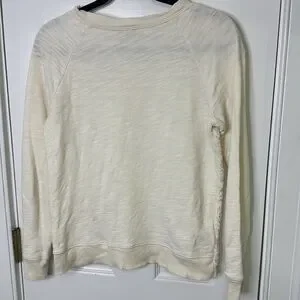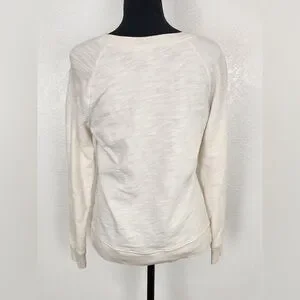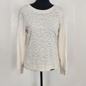 Elegant crew neck sweater. Features lace front design. Soft and stylish.