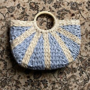 ONLY Colour block Lined Beach Bag Blue Cream Straw Vacation Summer Boho Casual
