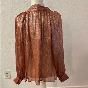 Shimmer in style with this elegant copper sheer blouse. Perfect for any occasion, this top adds a touch of sophistication to your wardrobe.