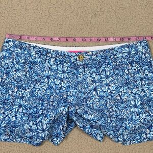 EUC size 12 Lilly Pulitzer Callahan Knit Shorts in Cumulus Blue Blooming Together floral print.