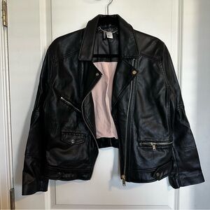 H&M Black Leather Motorcycle Jacket with Asymmetrical Zipper