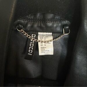 Great condition! This H&M leather jacket features a classic motorcycle design with a sleek black finish and an asymmetrical front zipper. Crafted from genuine leather, it offers a stylish and timeless look perfect for any occasion.