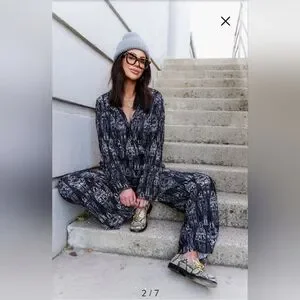 NWT/ lala Interstellar Astronauts Long Sleeve Plissé Top & High Waist Pants