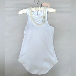NWT$265 Cinq à Sept Lizzie Necklace Embellished White Tank Top Sz Small