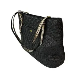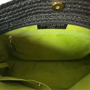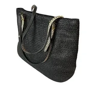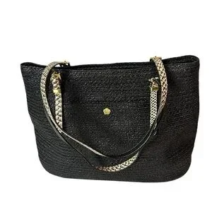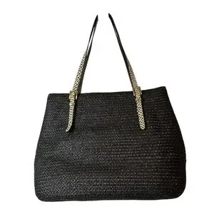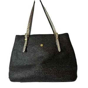 Eric Javitz women’s black straw tote bag with leather handles. Pre owned excellent condition.