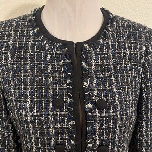 I loved this one ! Super pretty beading and tweed, fully lined hook and eye closure. Classic piece