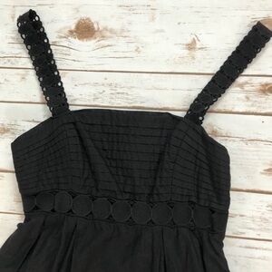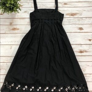 Catherine Malandrino Black Dress with eyelet details on the hem and waist and pleated upper top.
