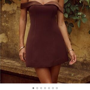 Runaway the Label Brown Off-Shoulder Ebony Mini Dress