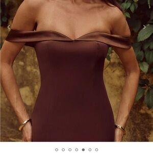 Off shoulder espresso mini dress