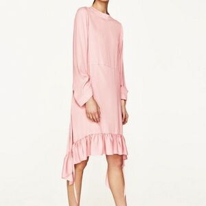 Barbie Core Zara Blogger Favorite Frilled Pink Midi Dress