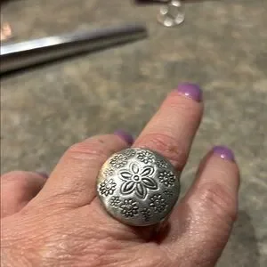 Beautiful engraved sterling silver ring the top of the ring is the size of a quarter….its a smaller size 8. From Sundance, comes with a Sundance box,