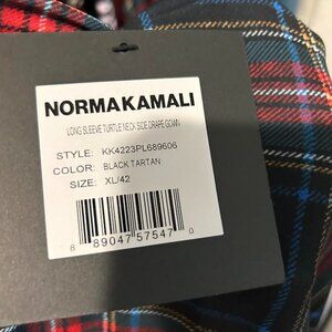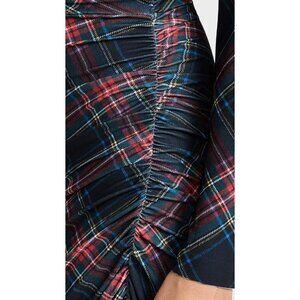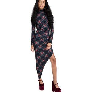 Norma Kamali Black Tartan Plaid Long Sleeve Turtle Neck Side Drape Gown