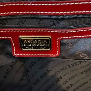 ARCADIA Italian red patent leather large tote bag in condition looks NEW 17 inch wide and 11 inch tall.