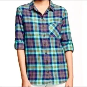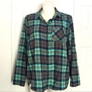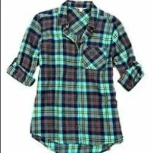 Aqua tan plaid flannel shirt size XS