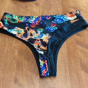 A really cute bikini by Shein in women's size small. Black with Oriental dragons. The top is lined.This is a really cute suit .