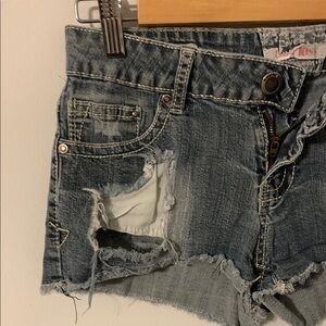 Stylish distressed denim shorts perfect for casual outings. Features a classic blue color and a comfortable fit.