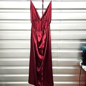 Jeykay Satin Burgandy Halter Maxi Dress