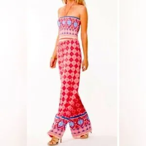 Beautiful multi-color Halter Tie Cemal Diamond Deco jumpsuit from Hale Bob.