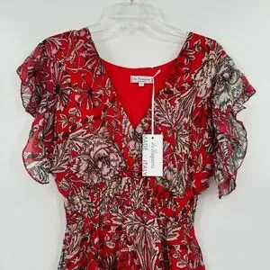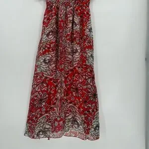 Le Ragazze Women’s Small Red Floral Italian Luxe Maxi A Line Silk Blend Summer Dress