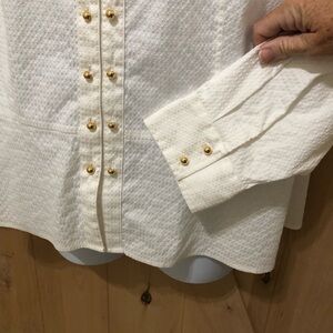 Jones New York Signature Women’s Pullover Blouse 3X White Stretch Gold Buttons