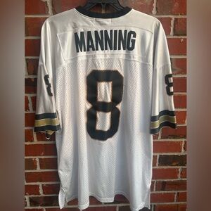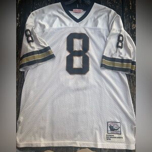 Mitchell & Ness Throwbacks New Orleans Saints #8 Archie Manning Stitched Jersey Size 56. White football jersey featuring black and gold accents. Number 8 on front and sleeves.