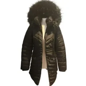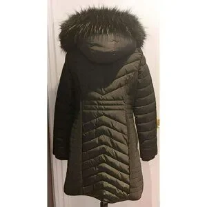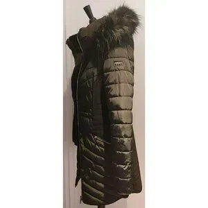 DKNY Black Quilted Puffer Coat Removable Faux Fur Hood