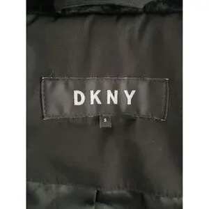 DKNY Black Quilted Puffer Coat Removable Faux Fur Hood Size Small