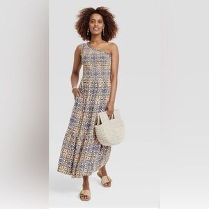 Knox Rose Women's One Shoulder A-Line Maxi Dress Asymmetrical Sundress Medium
