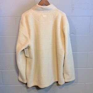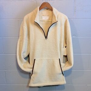 New with tags Boxercraft quarter-zip Everest Fleece Pullover is both warm and stylish, making it your new cold-weather best friend. The poly sherpa body has faux leather trim at the zipper and a kanga pocket that keeps hands toasty. Natural fleece color with brown accents, super soft and cozy. Excellent new condition , no rips or stains from a smoke free home.