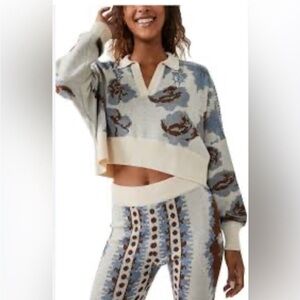 Ultra-cozy and made for lounging around, this soft set features a cropped long-sleeve top and matching bottoms in a printed fabrication.