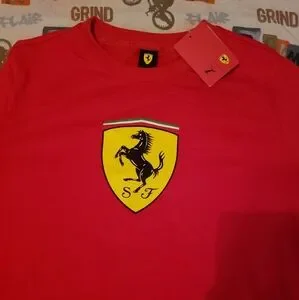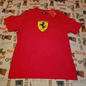 Puma Ferrari shirt is a men's size medium and is new with tags. Ferrari symbol on front with Puma symbol on back. Perfect for any Ferrari fan or Formula 1 Racing fan.