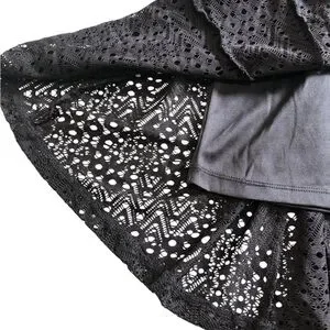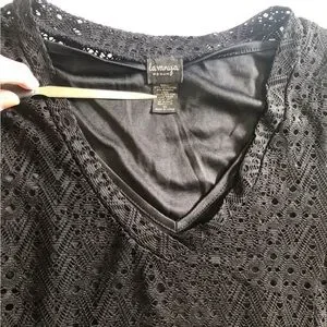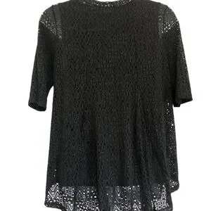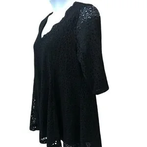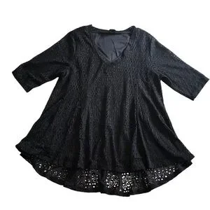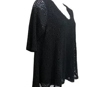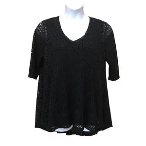 LaVanya Women’s Lace Eyelet Swing Top 1X Black Built-in Tank Top Half Sleeve