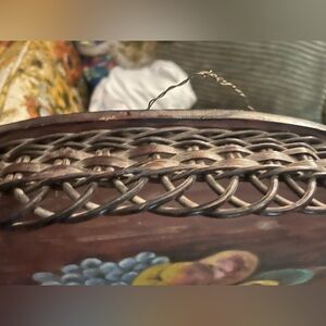 Large Vintage Hand Painted tray Wall hanging Art 22”x15” -Amazing piece 1950’s Woven trim -wire hang