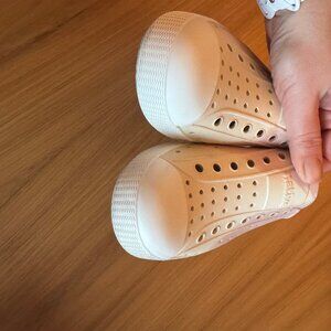 Unisex, Size 2. Gently Used. Toes and Shell show no stains. The Native Logos on the back are still intact and don't show wear. Little staining on the bottom. Worn a handful of times. Clean and from a Smoke Free Home.