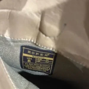 Stylish Roper Western boots featuring a patriotic stars and stripes design. Perfect for adding a bold statement to any outfit. Size 8 great condition.