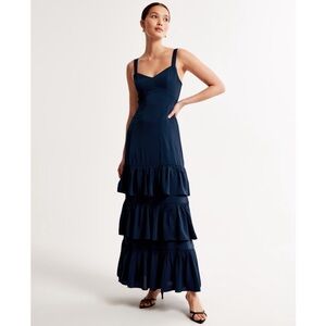 Abercrombie & Fitch XS Petite Navy Blue Ruffle Tiered Maxi Dress