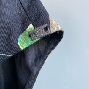Elegant black dress with a vibrant floral pattern, perfect for any occasion.
