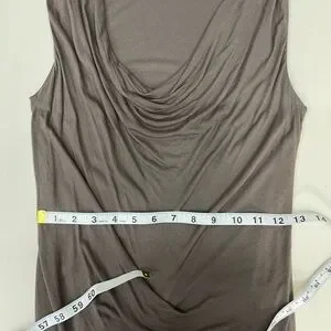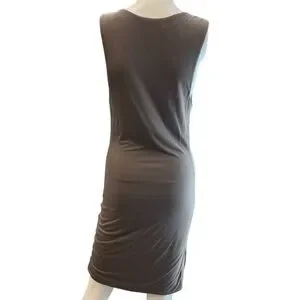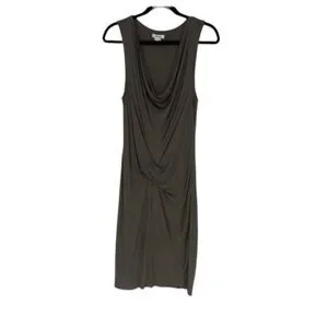 Helmut Lang Jersey Knit Tank Dress Size Medium. Beautiful draped neck jersey knit midi dress. It has some figure-flattering gathering in the front. It's very soft. The color is a greenish brown. It is in very good pre-owned condition with some minimal overall wear, but no holes or stains. The dress measures approximately 42 inches from shoulder to hem. Please see photos for details and feel free to ask questions!
