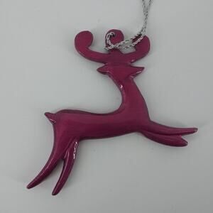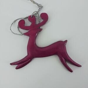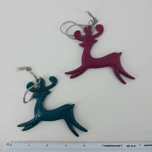 Reindeer Jade Magenta Christmas Tree Ornament Set 2 Metal Holiday Deer Holiday