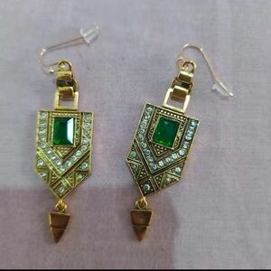 Marquis Ethnic Vintage Emerald Bronze Brushed Earrings