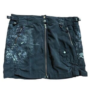 DA NANG | Black Gray Silk Embroidered Zipper Cargo Mini Skirt Women's Medium Y2K