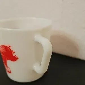 Vintage Circus Themed Pyrex Milk Glass Set. Red on White. Divided 10 Inch Plate. 6 Inch Cereal Bowl and Mug. Excellent Condition. No Chips or Cracks.