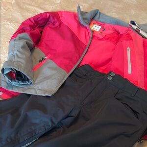 Sold only at exclusive ski resort retailers. Well Made quality ski set . Stylish red and gray jacket paired with sleek black pants. Perfect for outdoor adventures. Like new condition .