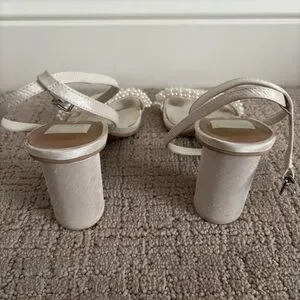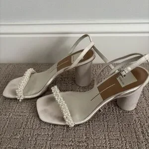Step out in style with these elegant cream sandals from Dolce Vita. Perfect for your wedding, rehearsal dinner, or any occasion, these shoes feature a detailed pearl design that jazzes up any outfit.