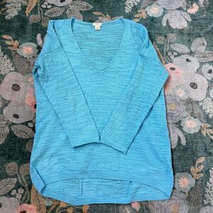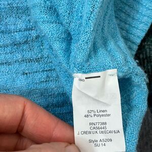 J. Crew Sweater Womens XS Blue V-Neck Linen Blend Lightweight Drop Shoulder slub knit oversized