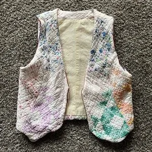 Absolutely adorable handmade vintage quilted vest. The quality is amazing and so is the pattern of the quilt! Fits a size XS-M