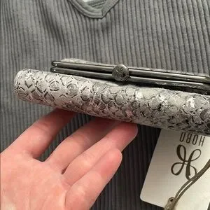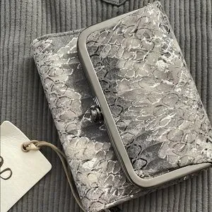 This wallet from HOBO showcases a distinctive crinkled texture that exudes modern elegance. The gray hue enhances its sophisticated appeal, while the zipper closure ensures your essentials are kept secure. Its sleek design and reinforced edges make it a stylish and durable accessory.