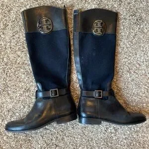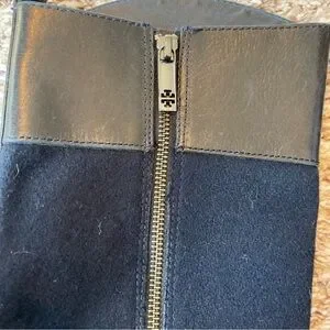 Tory Burch Riding Boots Wool Leather Black Navy Womens Size 6